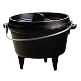 The 1 Qt Camp Dutch oven is perfect for cooking small portions. Like whiskey and tall tales, Lodge Cast Iron improves with age. Tightly controlled metal chemistry and exacting mold tolerances deliver consistent quality for even heating and superior cooking performance. Heavy gauge wire bale can be used for hanging the oven over the hearth or campfire. Three integral legs allow the oven to be perfectly spaced over hot coals. Tightly fitting lid is flanged to contain hot coals on top so the oven can be used for baking, stewing and roasting. The versatile lid can be inverted for used as a griddle. The lid seals in moisture and the excellent heat retention reduces the amount of energy needed for cooking. Hand washing with warm soapy water is recommended to preserve the cookware's original appearance. 6 5/8" diameter, 3" deep. Read more