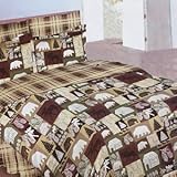 Patchwork Plaid Brown Burgundy Green White Cabin Bear Moose Twin Kids Comforter Sheet Set